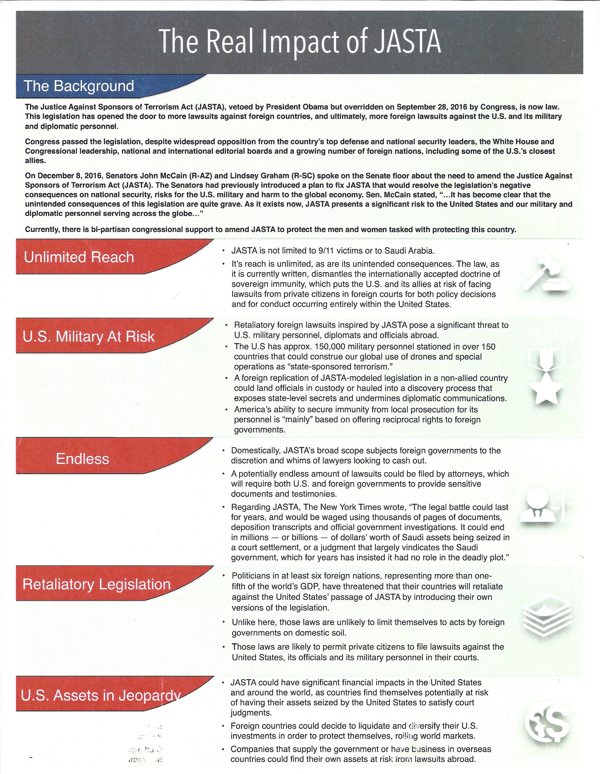 A piece of anti-JASTA literature commonly shared with veterans—titled “The Real Impact of JASTA“—failed to include a disclosure of the Saudi role in the campaign.