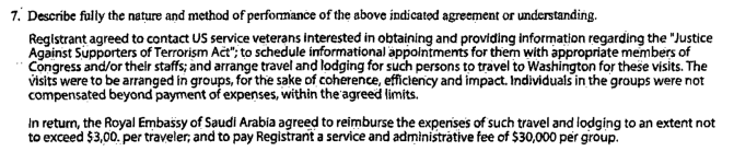 Perhaps we are to conclude that, like Wheeler’s professed negotiation of his arrangement with Prince Abdullah bin Faisal, his recruitment of scores of veterans to travel to Washington to oppose JASTA was purely oral, too.